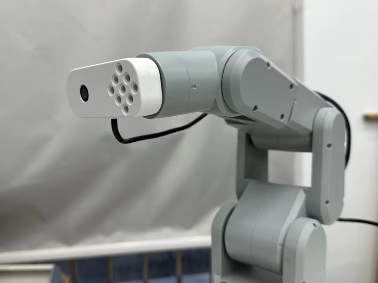 In the algorithm module, after obtaining the relative displacement, how to move the arm? To ensure the movement effect, we did not directly use the coordinate movement interface provided by Mecharm, but instead added the inverse kinematics part in python. For the specific posture, we calculated the inverse solution of the robotic arm and transformed the coordinate movement into angle movement to avoid singular points and other factors that affect the Cartesian space movement. Combining the code of the facial recognition part, the entire project is completed.
